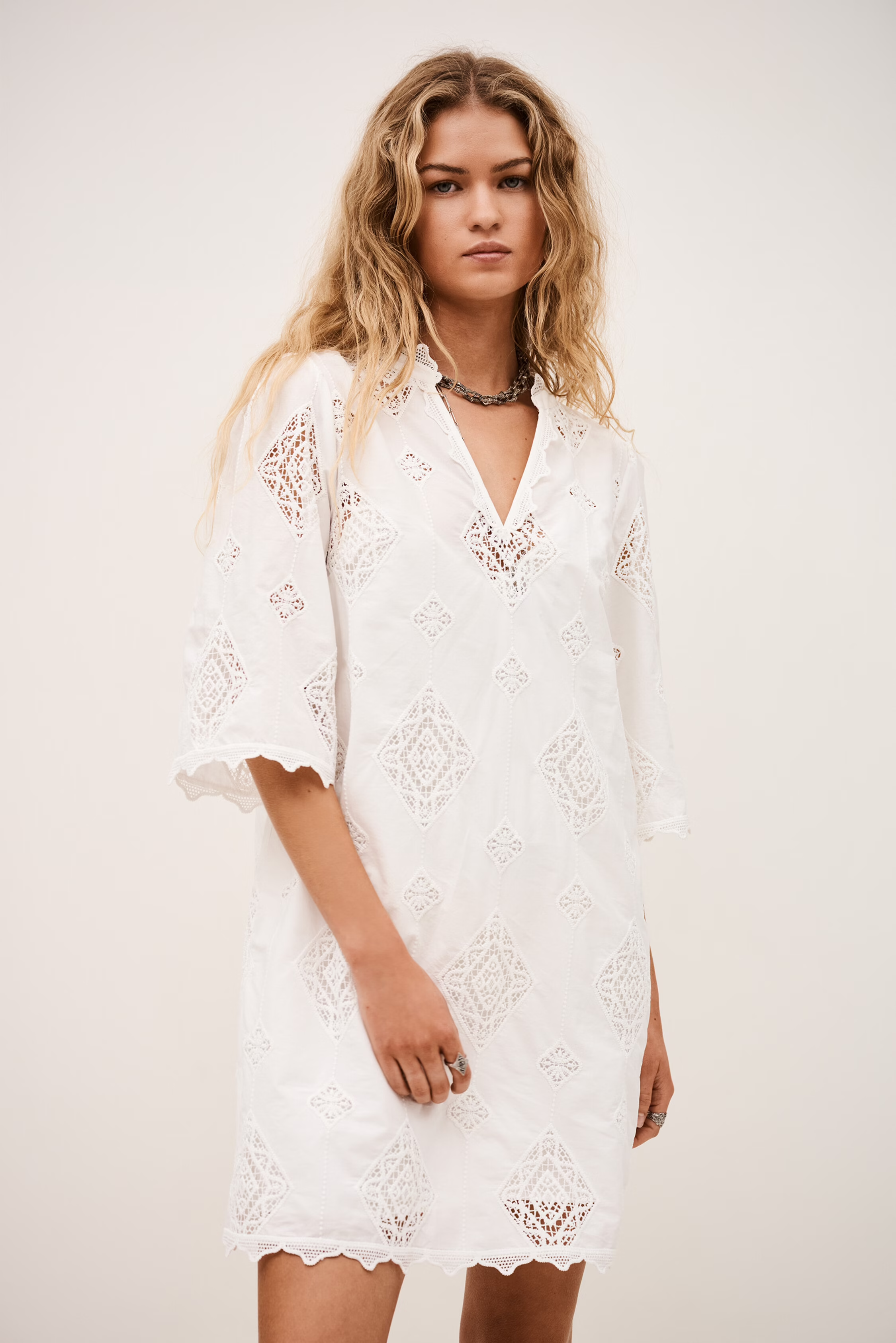 BA&SH MALO - Bawełniana mini sukienka z haftem angielskim