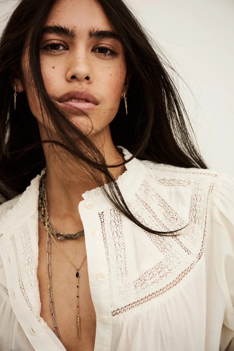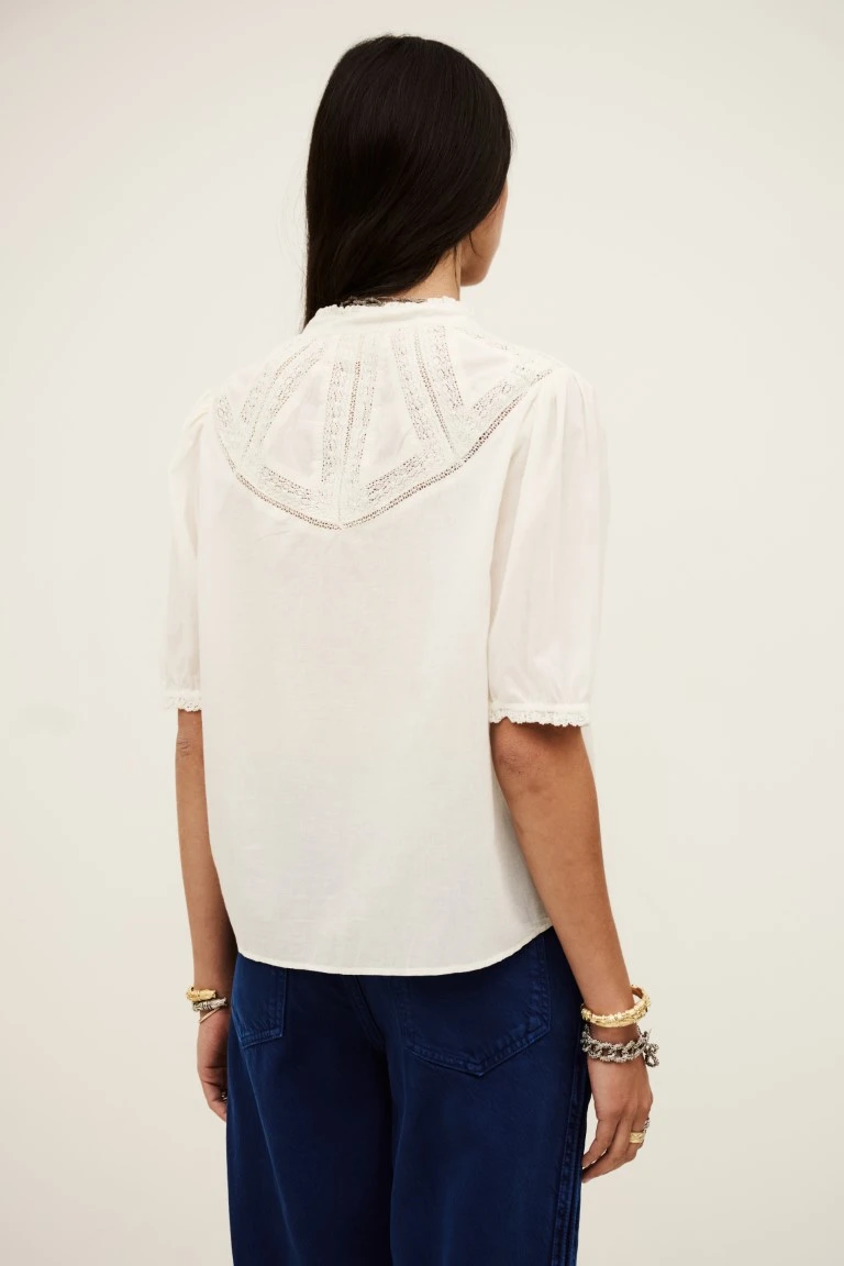 BA&SH NELLA - Koszula z krótkim rękawem ozdobiona haftami