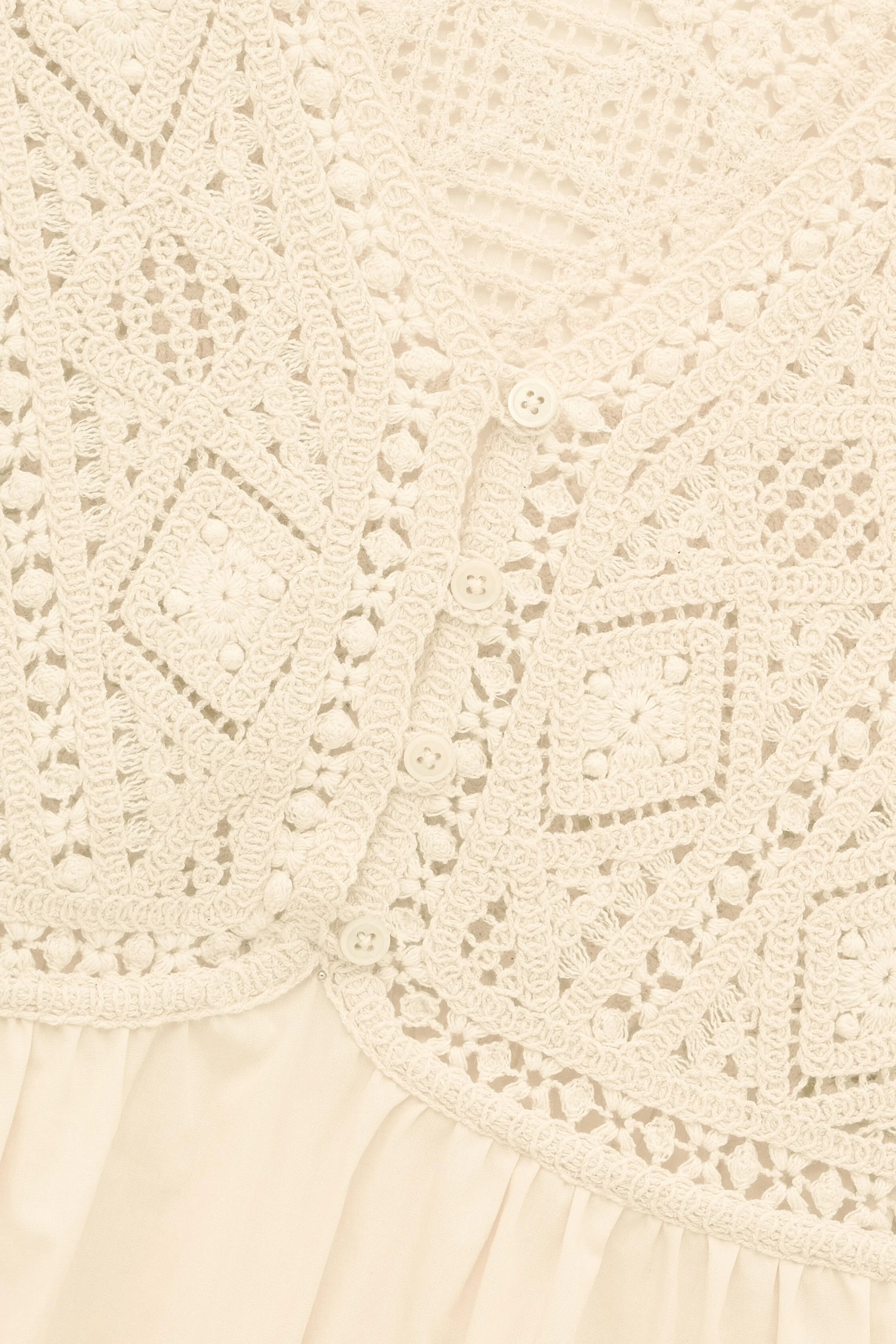 - Karczek z przodu i z tyłu z koronki gipiurowej