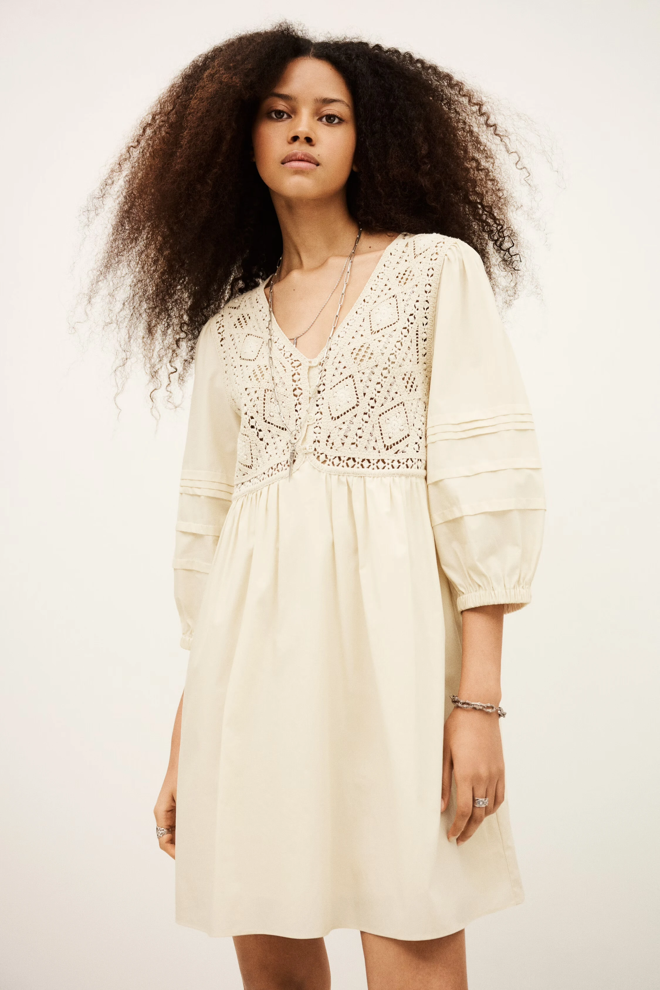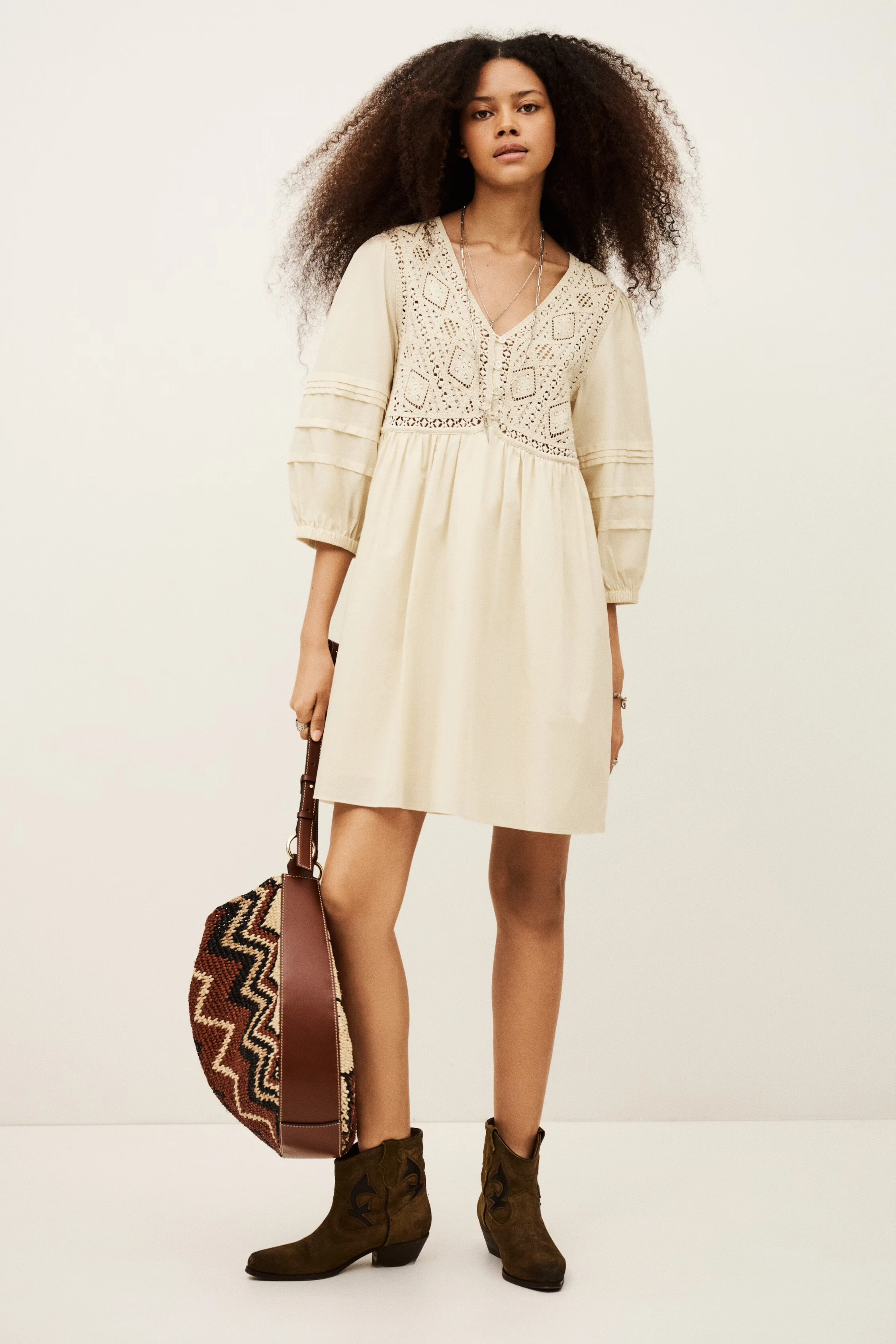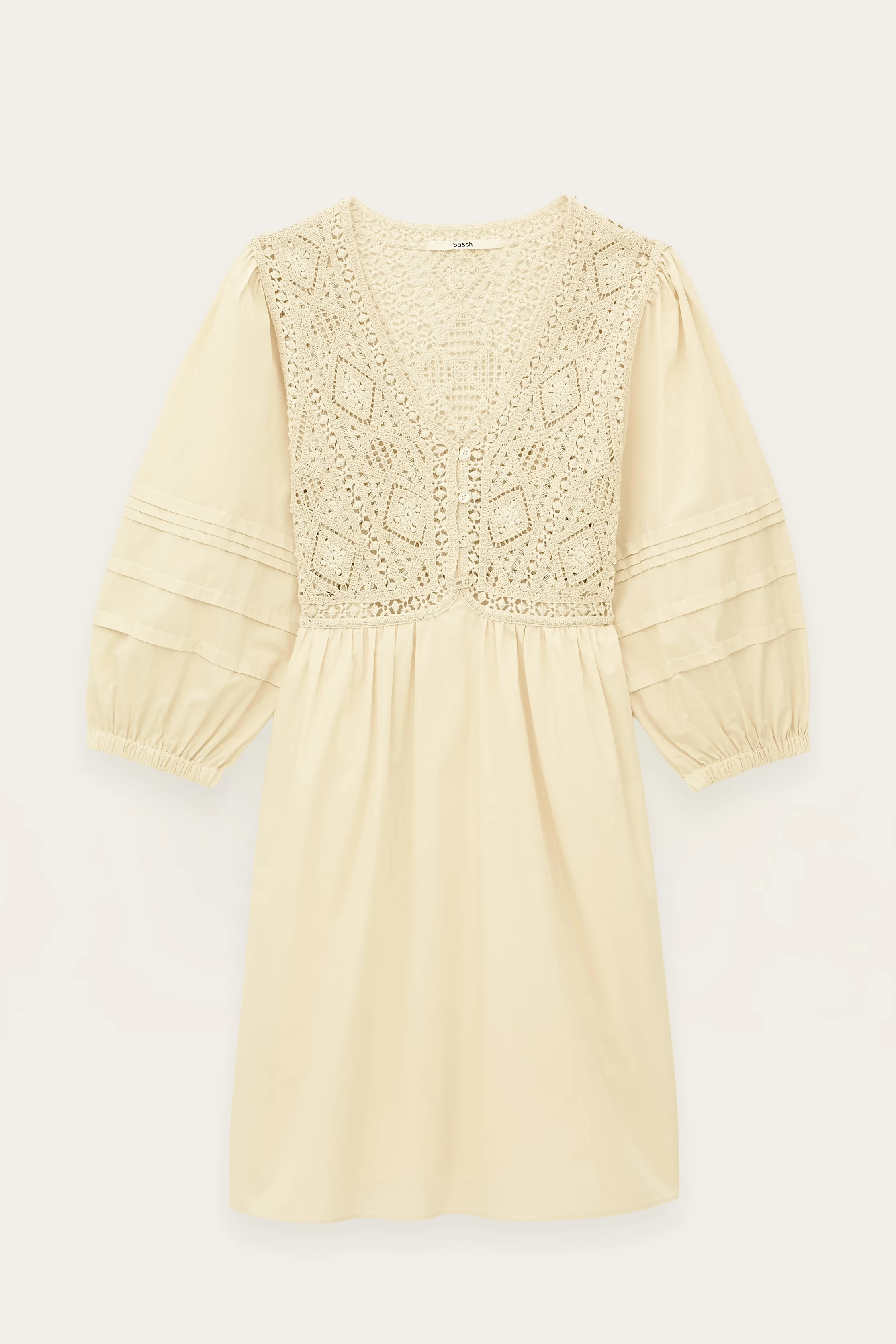BA&SH SONIA - Kremowa sukienka z szydełkowymi wstawkami