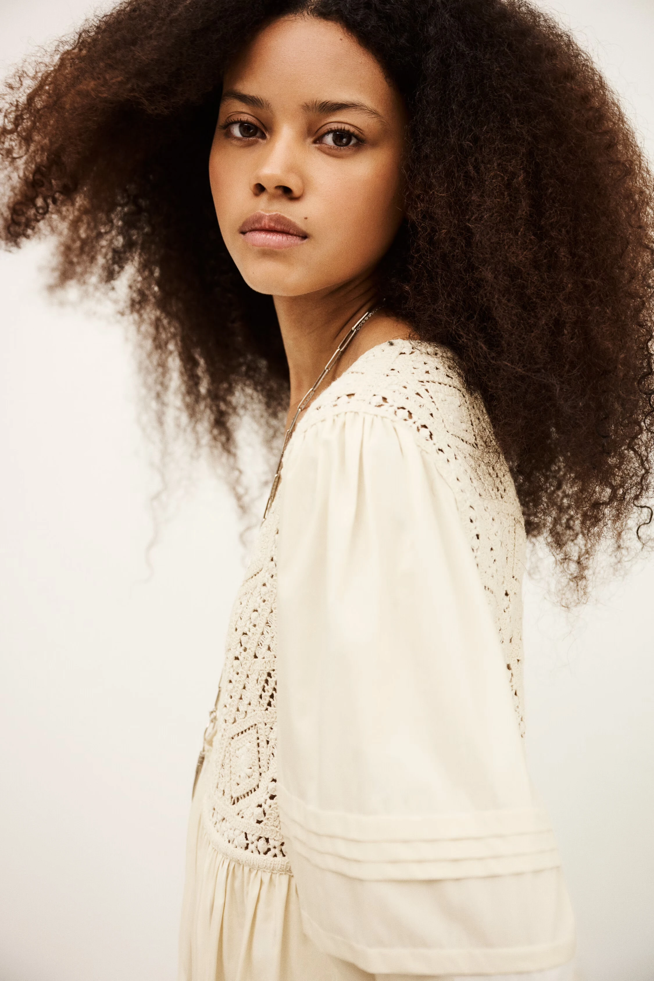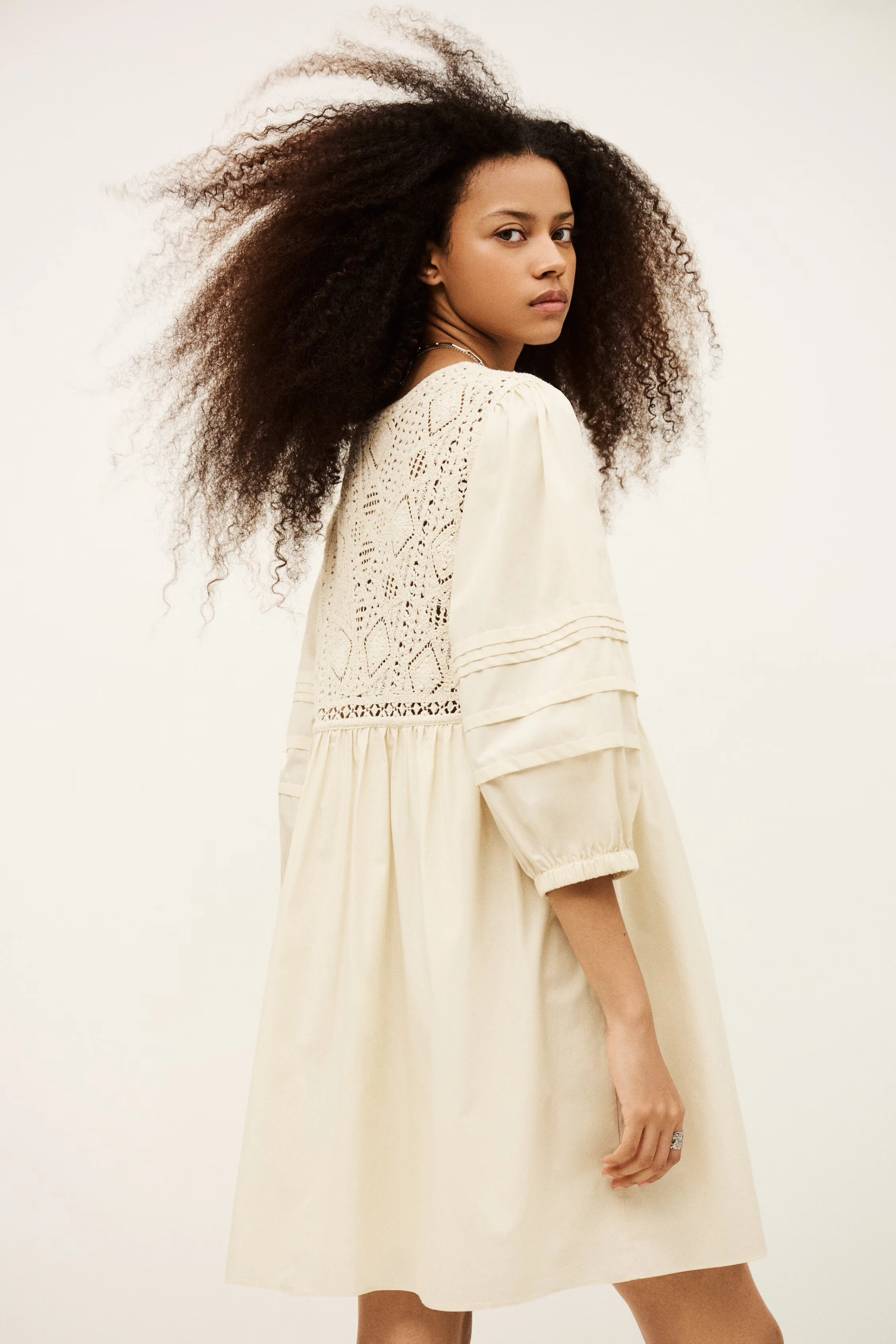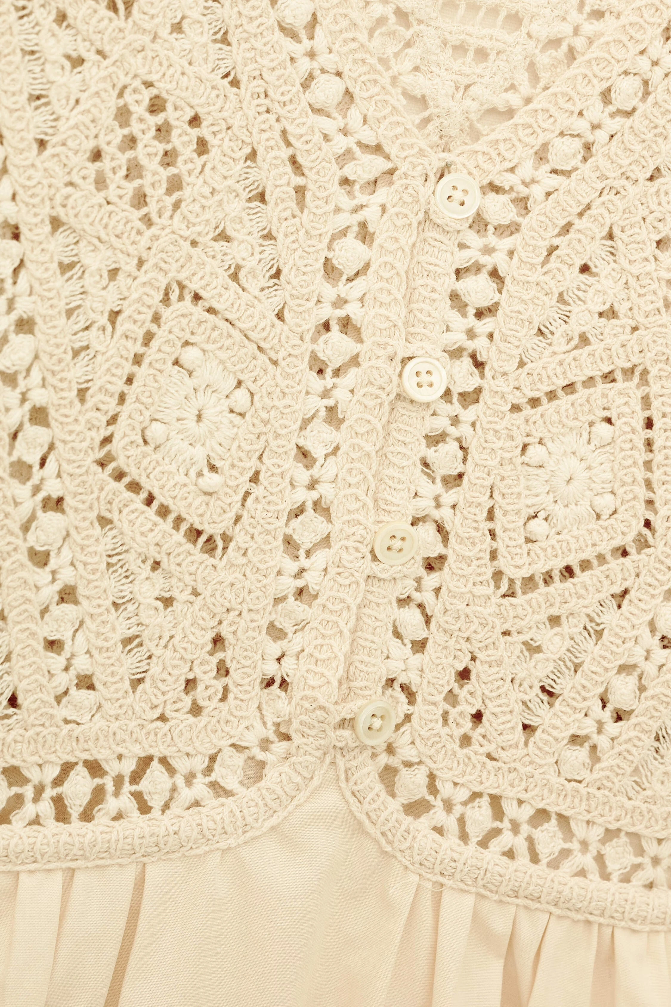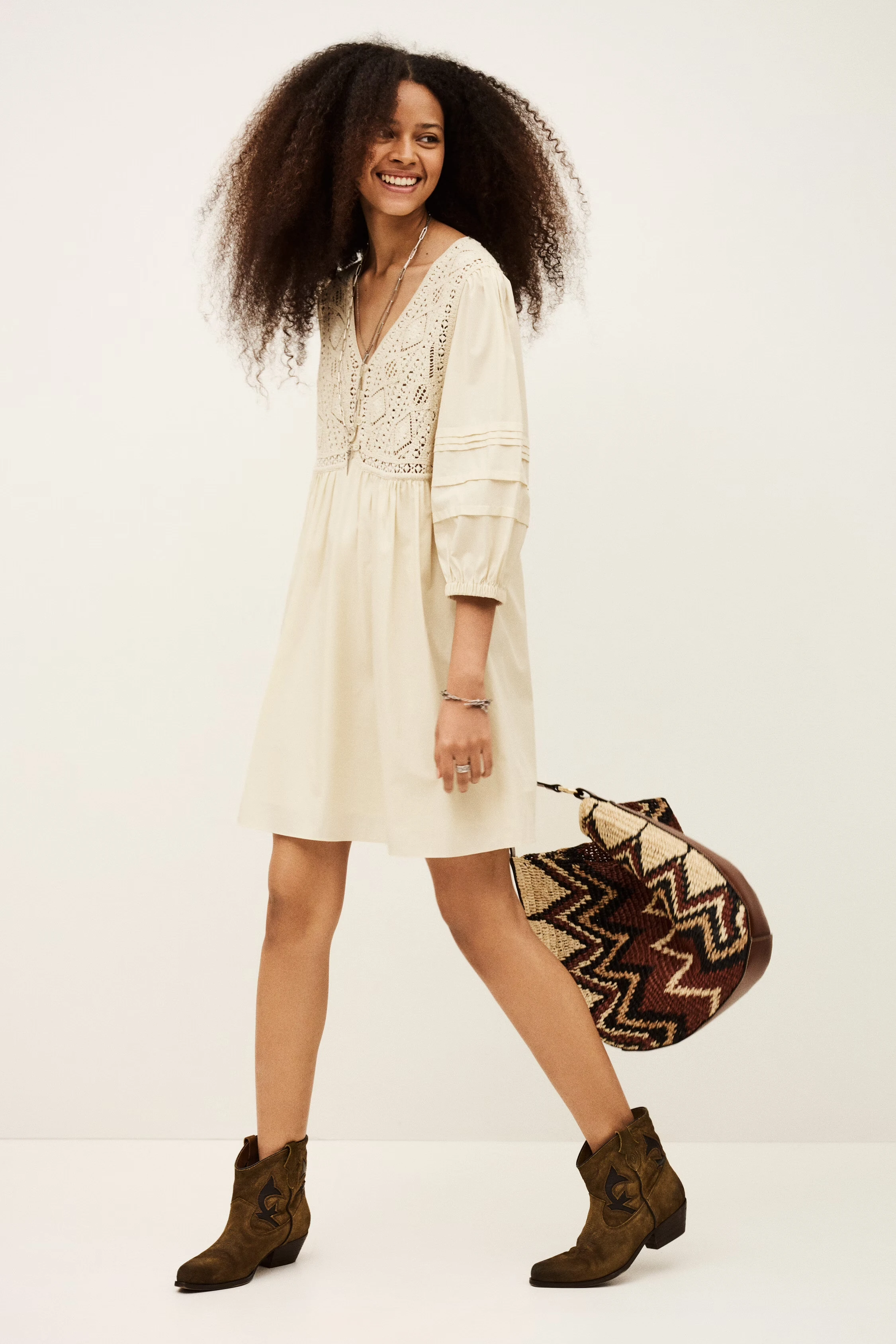BA&SH SONIA - Kremowa sukienka z szydełkowymi wstawkami