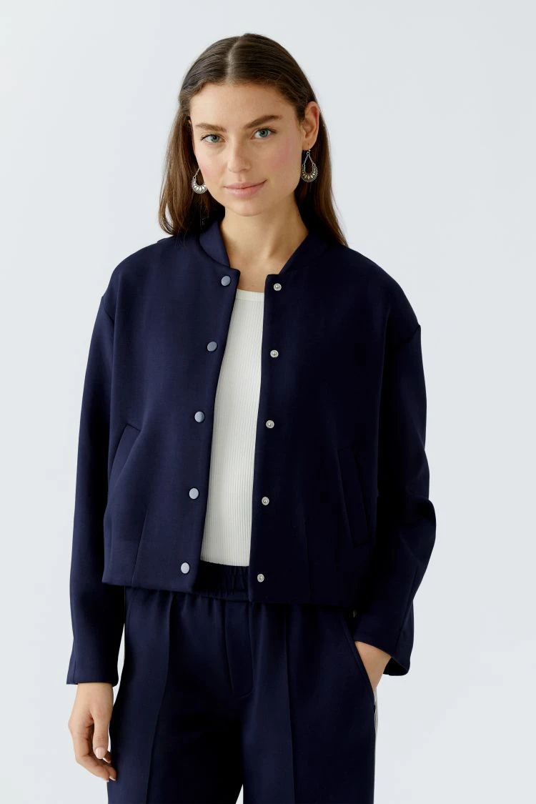 Bomberka z nowoczesnego materiału scuba – prosty przód u dołu, z wbudowaną gumką z tyłu