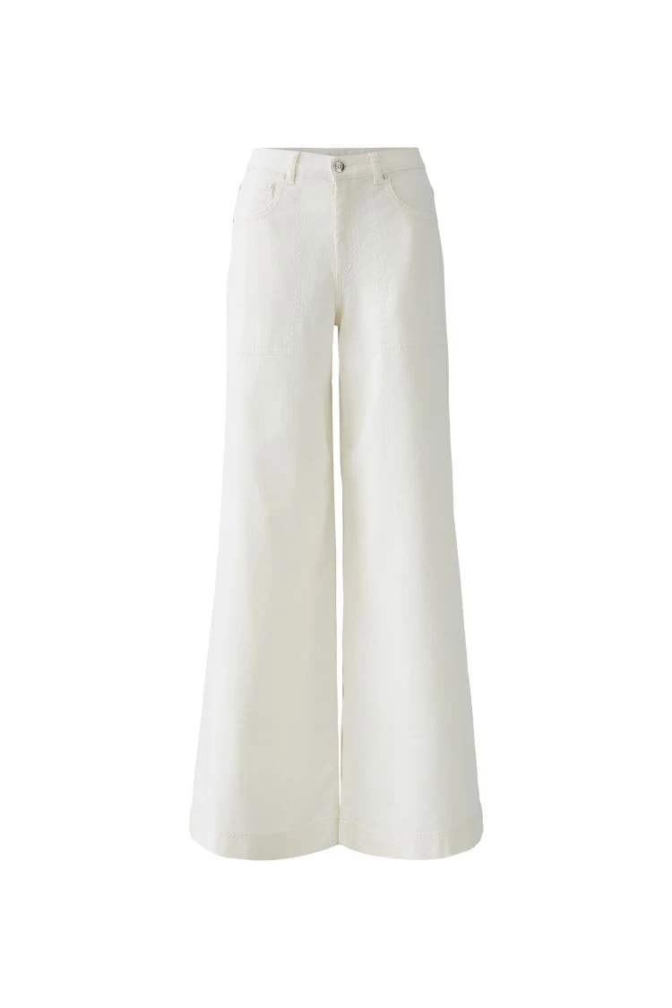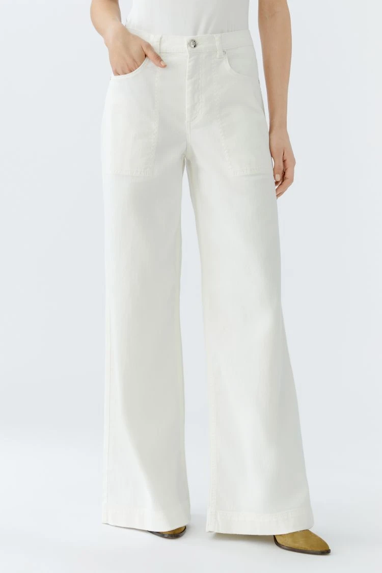 Kremowe jeansy wide leg z naszywanymi kieszeniami