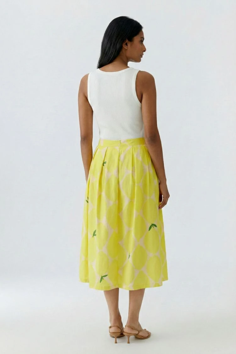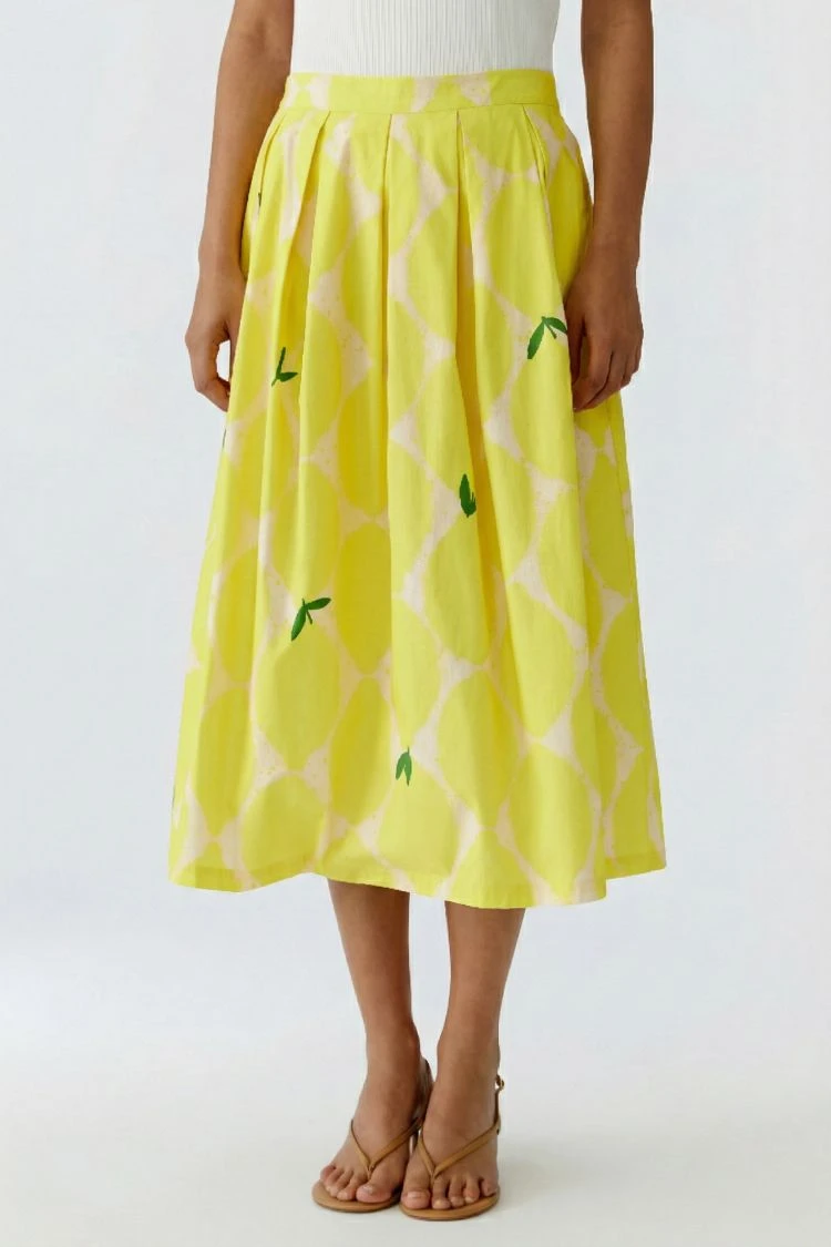 Spódnica midi z letnim nadrukiem w cytrynę, która od razu wprowadzi Cię w wakacyjny nastrój