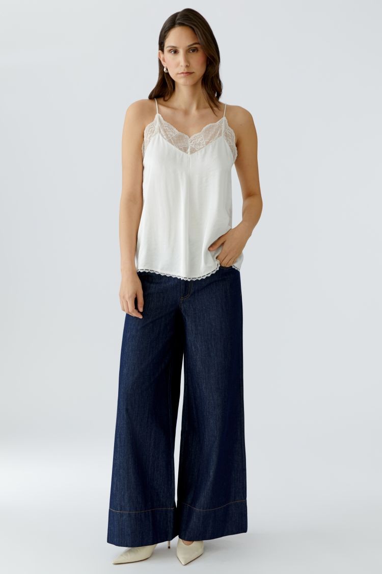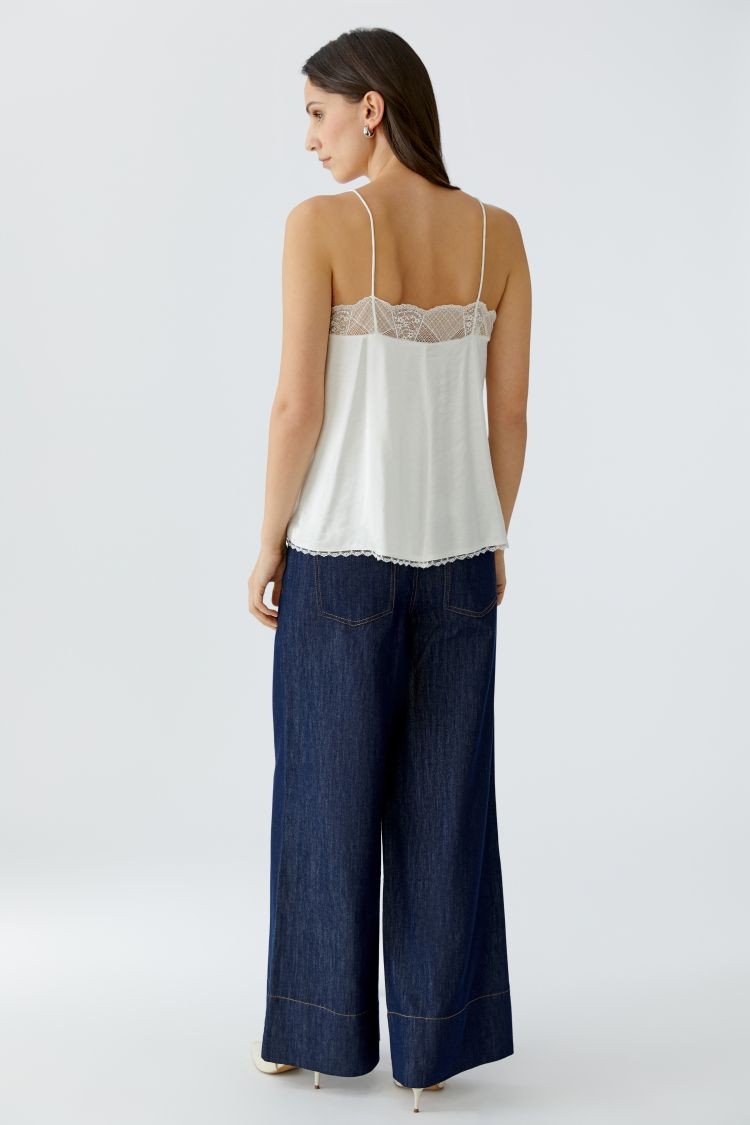 Top na ramiączkach typu spaghetti z elastyczną koronką - noszony solo lub pod swetrem